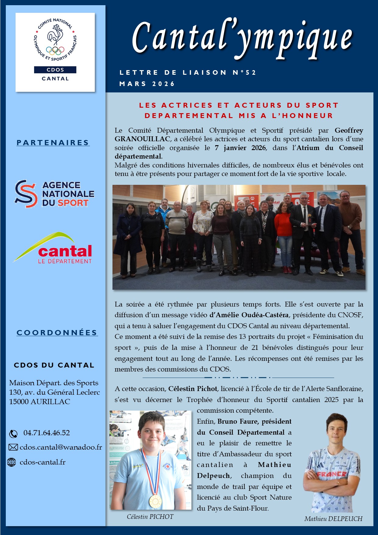 Le Cantal’ympique est un bulletin d’information et de liaison à destination des clubs et des comités départementaux.